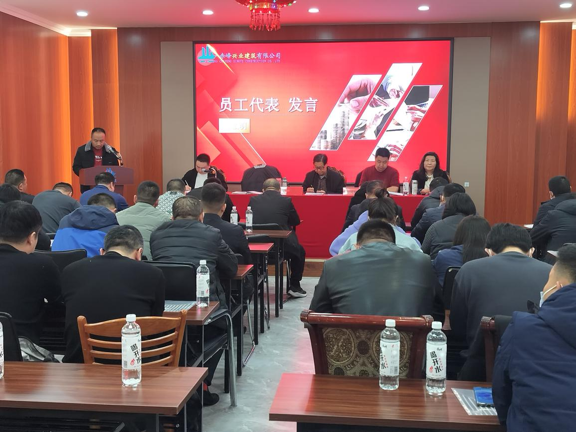 赤峰興業(yè)建筑有限公司員工代表馬弘明作為員工代表進(jìn)行了會(huì)議發(fā)言。作為技術(shù)人員,從工作崗位出發(fā),對(duì)工程質(zhì)量管理進(jìn)行了簡單的發(fā)言。